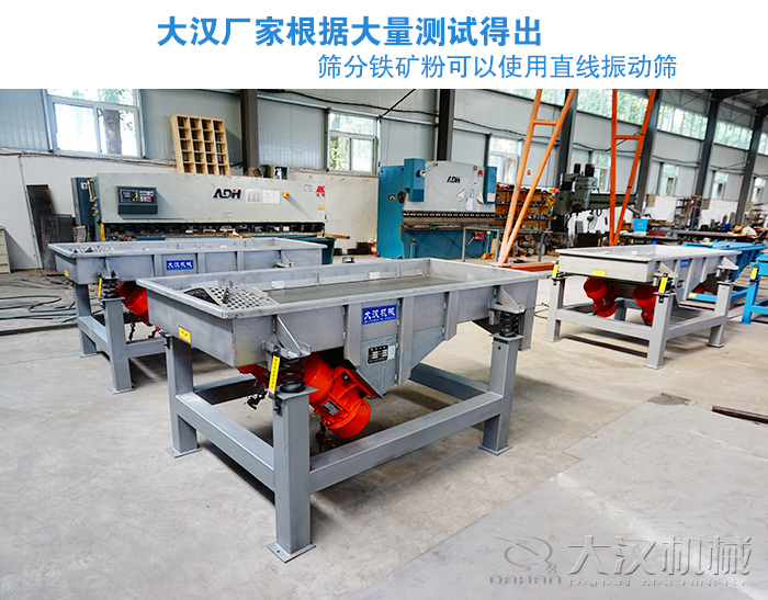 篩分鐵礦粉就用直線(xiàn)振動(dòng)篩,大漢直線(xiàn)振動(dòng)篩廠家直銷(xiāo),價(jià)格便宜,質(zhì)量獲得ISO和CE認(rèn)證,使用更長(zhǎng)久,如果您對(duì)我們的產(chǎn)品感興趣可以隨時(shí)咨詢(xún)。