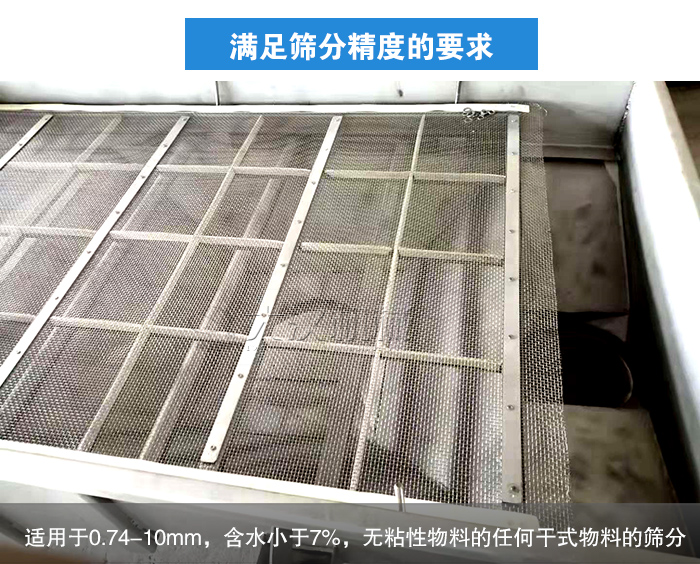 直線(xiàn)振動(dòng)篩適用于0.74-10mm,含水小于7%,無(wú)粘性物料的干式物料的篩分,高可以篩分400目以?xún)?nèi)的粉末狀物料,篩分精度可以達(dá)到96%以上,非常適合鐵礦粉的篩分。