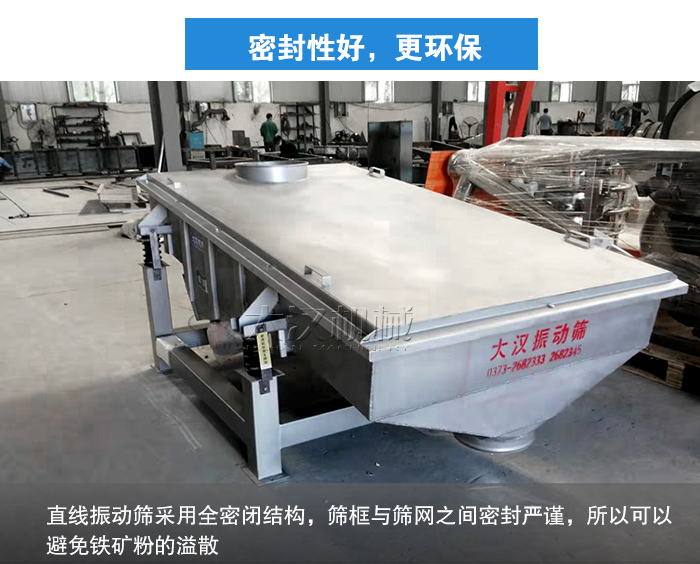 鐵礦粉是經(jīng)由破碎而形成的一種粉末狀物料,在篩分過(guò)程中容易出現(xiàn)粉塵飛揚(yáng),對(duì)篩分環(huán)節(jié)造成污染,使用直線(xiàn)振動(dòng)篩可以解決這一問(wèn)題,我們的直線(xiàn)振動(dòng)篩采用全密閉結(jié)構(gòu),篩框與篩網(wǎng)之間密封嚴(yán)謹(jǐn),所以可以避免鐵礦粉的溢散,符合的要求。