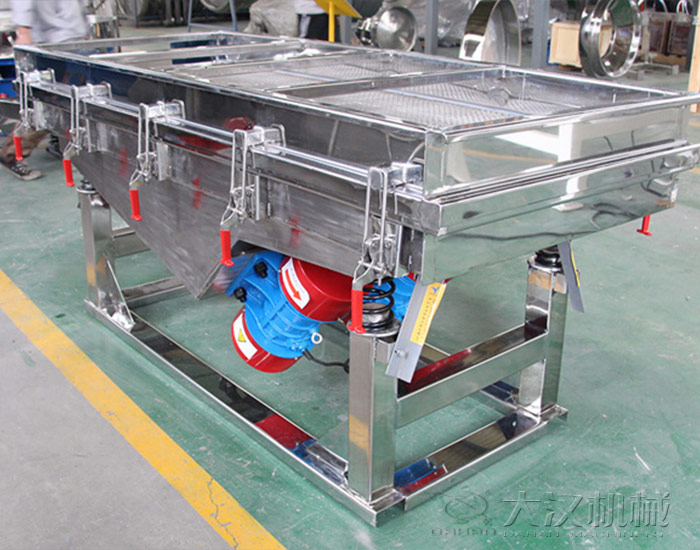 不銹鋼直線篩是直線振動篩的一種,簡稱不銹鋼直線篩。新鄉大漢不銹鋼直線振動篩是針對衛生標準比較高的行業而專門研發制造的一款新型振動篩分設備,它是在普通直線振動篩的基礎上將其材質改為304不銹鋼,具有一定的耐腐蝕性,還可按照客戶要求可做為全不銹鋼、接觸物料部分為不銹鋼材質等。具有耗能低、產量高、無粉塵溢散等特點,自動排料,更適合于流水線自動化作業 。