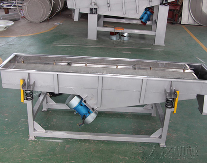 不銹鋼直線振動篩主要由篩箱、篩框、篩網、振動電機、電機臺座、減振彈簧、支架等組成。