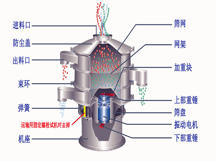 不銹鋼振動篩(不銹鋼旋振篩)主要由篩箱、篩框、篩網、振動電機、電機臺座、減振彈簧、支架等組成。